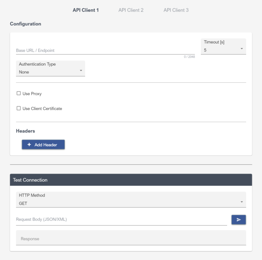Deskval Workbench offers 3 API Clients, and configured as: