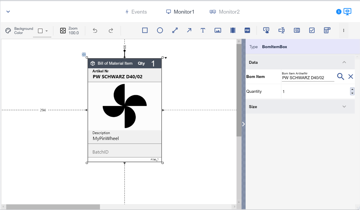 , is provided in the Design Items. Placing it into Monitor1 will enable operator