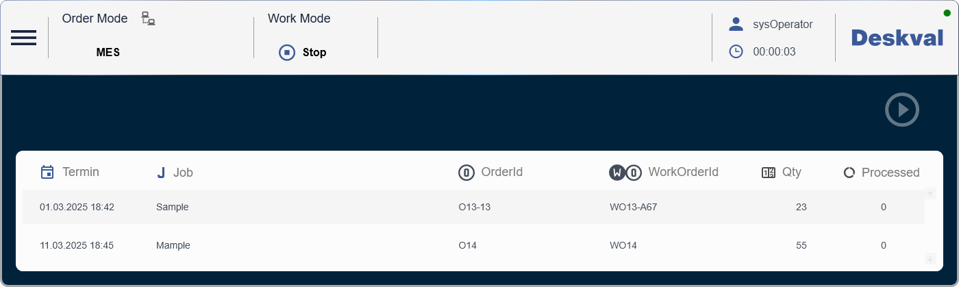 Console in MES Mode - No released Orders -