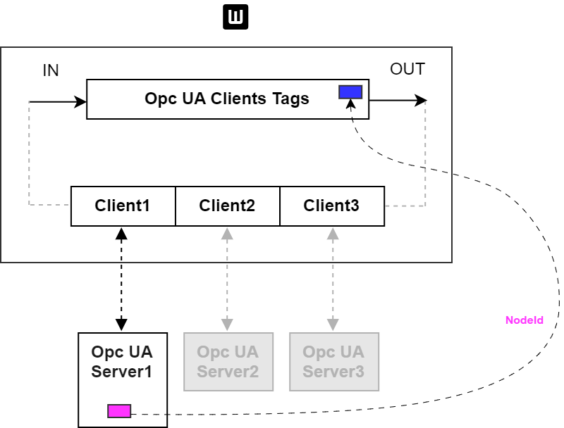 Opc UA Clients Tags are shared across the Clients, thus each Opc UA Client Tag needs to be separately configured, to link to a target Opc UA Server item. |
