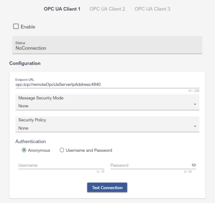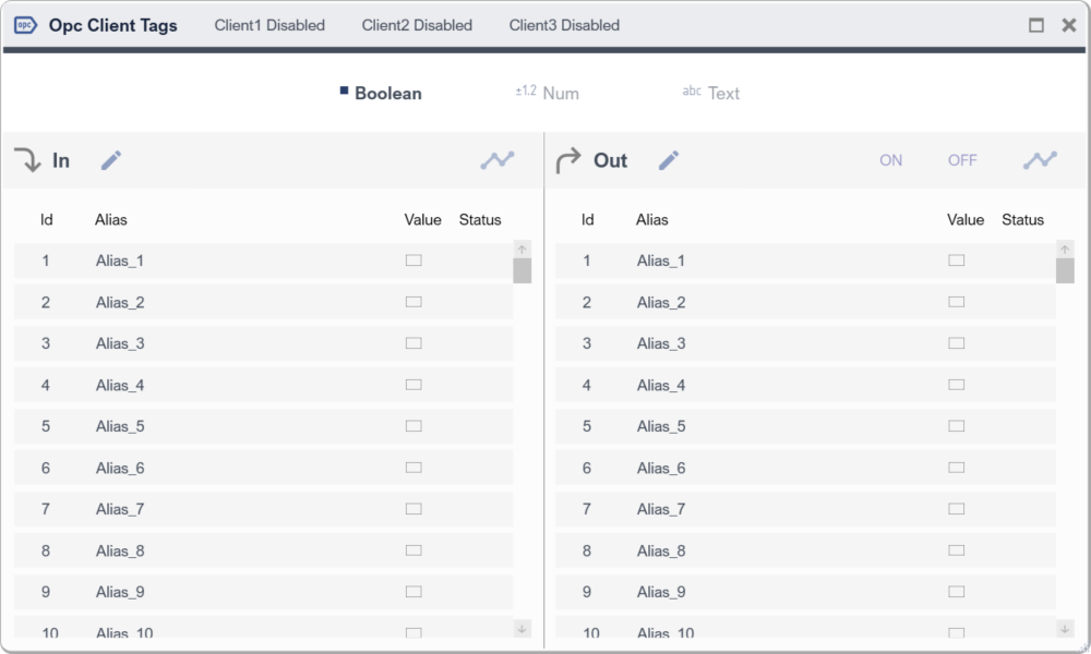 Deskval Workbench offers 3 Opc UA Clients. Each Client can be configured to communicate with a target Opc UA Server.