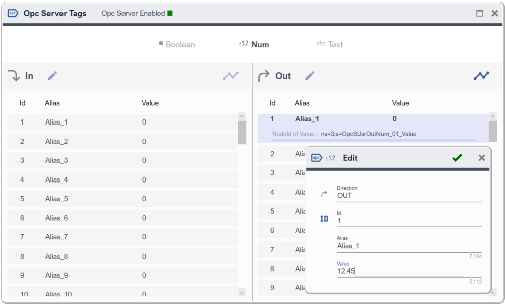 Each Opc Ua Server Tag have an Opc Identifier, uniquely represented to an Opc Ua Client. By selecting an Opc Server Tag, its Opc Identifier will be shown.