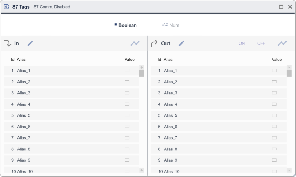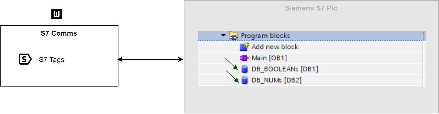 - S7 Plc program should have 2 Datablocks that are related to Boolean and Num (Double typed) Tags.