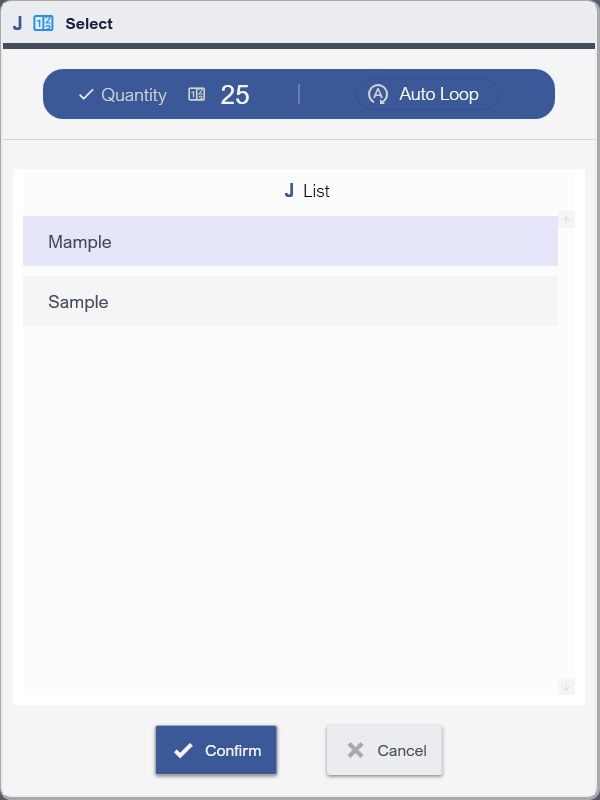 Selection dialog lets you to select a Job and execution quantity. There are 2 ways to determine the execution quantity: Direct quantity entry