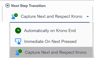If Event and Design Item Consents are not satisfied within Krono time, a Next Button will appear in the context menu, and flow will not move to Next step automatically. In this case, operator should click appearing Next button.