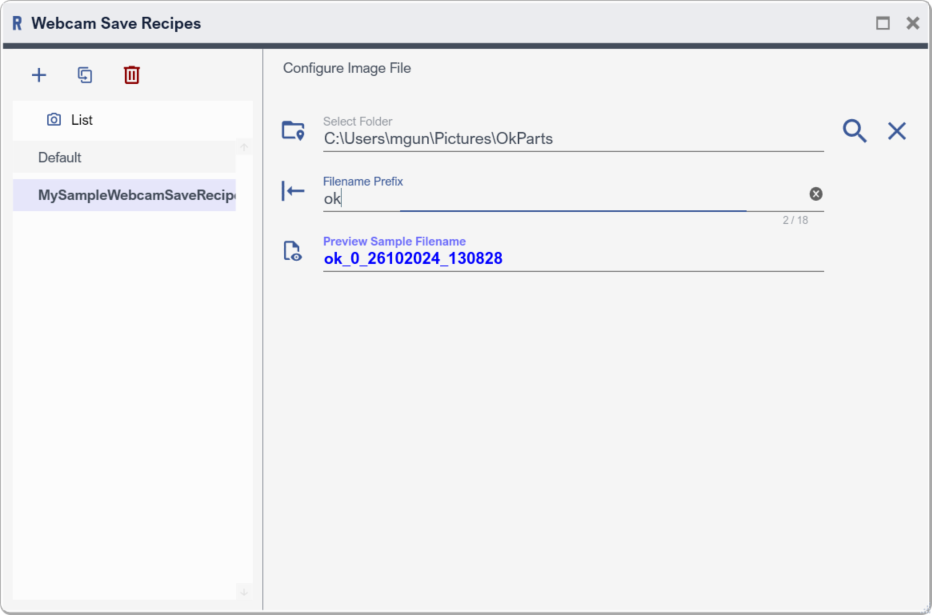 . Let you select the folder to save the image files and define a prefix for the filename.